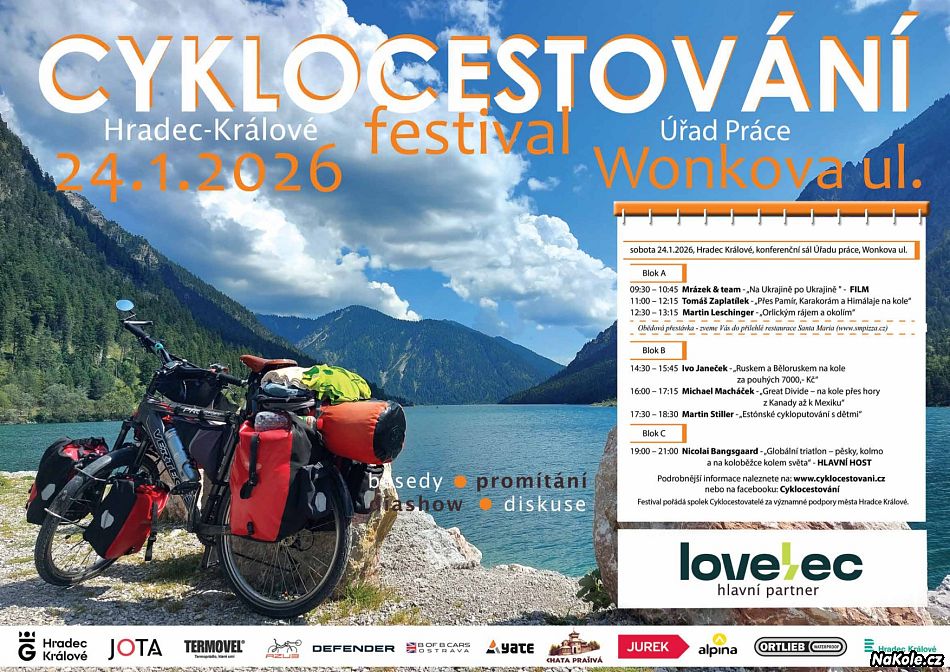 Tradiční specializovaná přehlídka cestopisných besed a promítání o „cyklocestování“ a cykloturistice. Tato nevšední akce je určena nejen pro všechny „cyklocestovatele“, kteří vyrážejí na své cesty po světě s kolem, ale i pro všechny příznivce nenáročné cykloturistiky, cestování a pohybu v přírodě. Těšit se můžeme na plno dobrodružství, sportovní výkony a plno krásných záběrů. Samozřejmostí je fajn nálada.