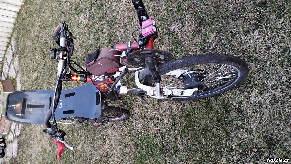 Celoodpružené elektro-lehokolo nebo možno bez elektriky. Motor 250 W v předním kole, baterie 17 Ah, dojezd bez problémů přes 100 km. Kotoučové brzdy Avid BB7, řazení 3x9 Shimano Deore, vidlice Suntour, kola rozměr 24", sedačka Azub.