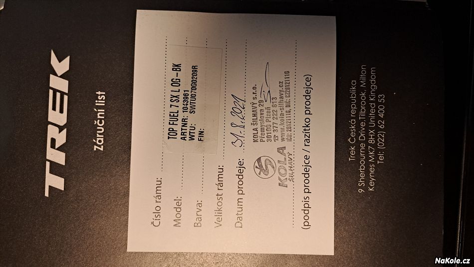 TREK TOP FUEL 7 SX , vel. L, zdvih 100mm, vidlice RockShox, tlumič Fusion, zamykání vidlice a tlumiče z řidítek, teleskopická sedlovka, Sram SX 1x12. Kolo je po serviszu, nový zadní plášt a do obou je dolitý těsnící tmel. Vše bez vůlí. Doklad o koupi.