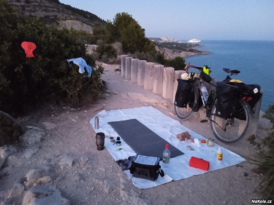 Dny jsou slunné a teplé. Je to balzám po téměř dvou týdnech chladu. Zahřeje i teplé české slovo nad kávou u bydlíku sympatické mladé rodiny kousek za MIAMI PLATJA. Když se k těmto všem radostem přidá ještě chyba v mapě (značení EV8 v Katalánsku nefunguje), která mi splní mě přání nocovat na osamocené pláži, jsem v nebi. Co na tom, že jsem před tím musel jet po hrubé kamenité cestě a z ní snést kolo do odvodňovacího tunelu pod dálnicí, kde nebylo vidět světlo na druhém konci..? A druhý den kolo vynést na útes na úzkou cestičku a ještě dvakrát přenášet.. Až si budu příště něco přát, budu konkrétnější. Co kdyby se mi to opět splnilo.. ;)