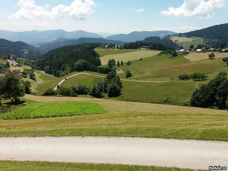 sobota, po snídani se busem přesuneme do střediska Rogla, nevynecháme rozhlednu na vrcholu, pak už jedeme lesními cestami a úzkými asfaltkami po jižním úbočí Pohorje, přes horské farmy a zapadlé vesničky. Do hotelu dojíždíme na kolech, ještě si dnešní trasu prodloužíme o dva kostely, co jsou skoro na trase, ovšem na kopci. Helena celou cestu občas vybíhá na blízké kopce, neb má aplikaci Vrchobraní. My s Lenkou hlídáme kola a než stihneme dojíst tyčinku nebo jablko, je Helena nazpět.