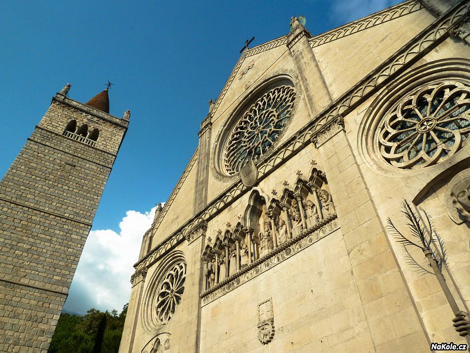 Historické centrum jsme jen zevrubně prolétli a vyrazili vstříc dalšímu cíli, městu Palmanova. Půvab Palmanovy vynikne především na mapě, kde je jeho hvězdicovitý tvar krásně patrný. I zevnitř se však je na co dívat. Centrální náměstí spolu s chrámem a monumentem uprostřed stálo za zastávku. Právě ve stínu monumentu jsme si odpočinuli, abychom pak skrz město a jeho další historickou bránu vyjeli na poslední část dnešní etapy s cílem v přímořském Gradu.