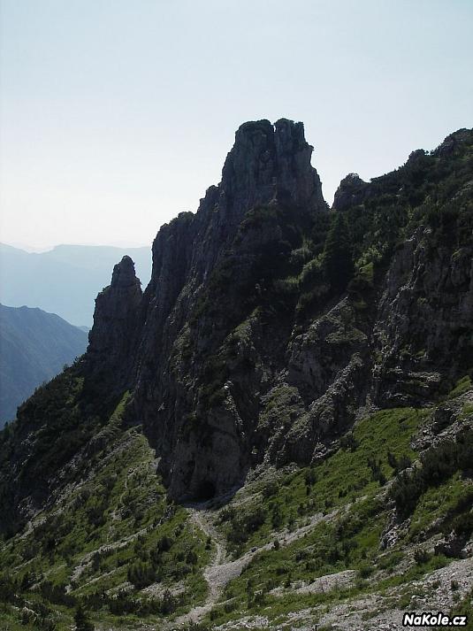 Ráno je (mi) líp mažeme to pod Monte Caplone. Zatímco okolo Rivy už určitě vylétají z nadmořské výšky 72 metrů mračna bikerů, tady na cca 1300 m.n.m plus minus je klid a osamělost. Ne všichni totiž vědí, že zasypaný tunel bránící na trase průjezdu pod Monte Caplone se dá přenést horem. Babičky jsou spokojené, nechávám je jako najít cestičku nad tunelem, posléze i ztracenou (při hledání té cestičky) helmu a krásné výhledy na Brentu. Blbě se u salaše k níž vede ze zdola cesta zakecávám s českými motorkáři v protisměru a vysvětluji jim, že vím co jde na motorce jet a že tohle dál už pro ně nejde ať si najdou jinou cestu a záhy už nacházíme novou cestu my.