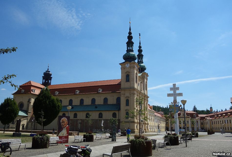 Když pominu stále trvající vedra, začal dnešek příjemně. Ráno jsme měly poměrně brzy sbaleno, stihly jsme i promazat kola (a vyloudit u paní ubytovatelky nový hadr na jejich utření) a vyjet chvilku před devátou. Asi 5 km se mírně stoupavá cesta zdála příjemná, ale za přístřeškem pod Malou Dřínovou se to změnilo. Na cestě se zvedl sklon a na štěrkem vysypané lesňačce to začalo podkluzovat - musely jsme tlačit. Marně jsme se těšily, že od vrcholu pojedeme. Cesta dolů byla vymletá úvozová cesta s kořeny, takže jsme i dolů k řece kola vedly. Další cesta do Veverské Bítýšky už byla v pohodě - a s bonusem: našla jsem otevřený cykloservis, kde mi pán seřídil řazení. A dobře - vydrželo bezchybně fungovat celý zbytek cesty i popojíždění doma. Čekaly jsme asi 90 minut u kávy a dortíku (Líba) a u zmrzliny (to je zase moje parketa). Dalším cílem byl hrad a zámek Veveří. Bohužel, na prohlídku jsme už neměly čas, IC s razítky bylo na nádvoří, kam nás bez zaplacení vstupného nepustili. Tak nic, jedeme dál. Naobědvaly jsme se v areálu přístaviště u Brněnské přehrady, potom přejely hráz a přes Kuřim, Lelekovice dojely do Vranova k paulánskému klášteru a kostelu se zvonkohrou. Protože byl podvečer, bylo místo téměř prázdné, z ochozu byl krásný výhled do kraje, a tak jsme se tu zdržely. Následoval pěkný 6 km sjezd, kousek po rovince a byly jsme v Blansku. Večer ještě pěší výlet do města (tedy hlavně do hospody na večeři) a pak spát.
