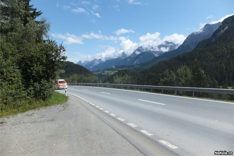 Na rozdíl od své cesty do Benátek 2010, kdy jsem dal celou trasu Kufstein - Insbruck - Landeck - Martina (CH) po silnici, jsem ji tentokrát absolvoval po cyklostezce. Bylo to pomalejší (stezka často kličkuje), ale mnohem příjemnější (viz výše :-). Na rozdíl od bavorské části, kde zřejmě milují písky a šotolinky, byly tady povrchy převážně asfaltové, což se v mokru a dešti jelo lépe.
