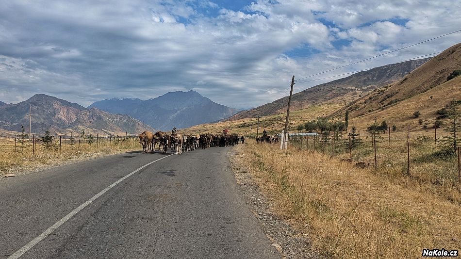 Po prvním checkpointu jsme se napojili na jediný dlouhý úsek po silnici – po „slavné" Pamírské dálnici. Ne že by všechno bylo po asfaltu, ale sklon byl mírný a povrch relativně rovný. Občas mi cestu zastoupila obrovská stáda ovcí. S naší dálnicí to nemělo nic společného. Jen s těmi kamiony to bylo peklo. Hlavně navečer, když tam foukal silný vítr. Z některých korbiček to odfoukávalo štěrk a na mě doslova pršelo kamení.