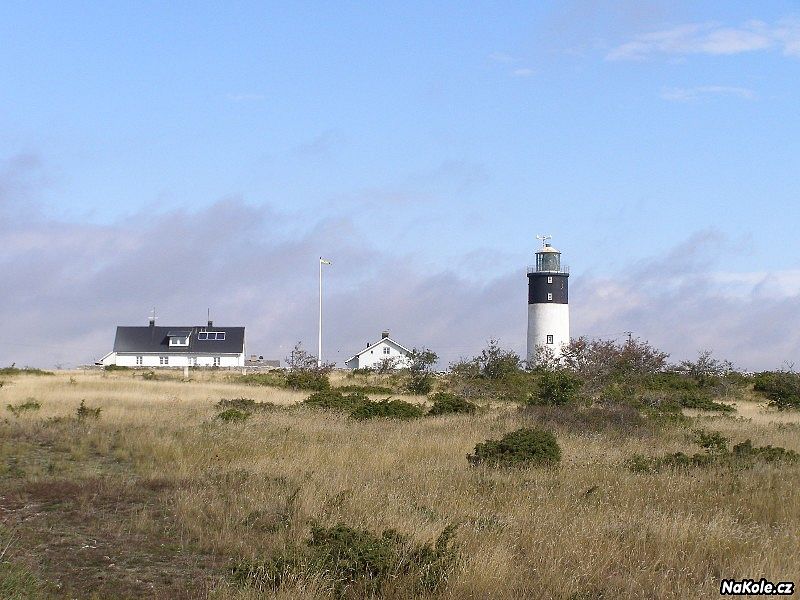 Zatímco západní pobřeží je tvořeno převážně vysokými útesy, východní pobřeží je ploché, s mnoha zálivy a zátokami. Ze silnice odbočuji na kamenitou cestu, po které jedu až do zátoky Flistak. U vody stojí několik starých kamenných rybářských domků, přes hladinu zátoky je proti slunci vidět plochý ostrov se siluetou majáku. Dominantou zátoky jsou ovšem nádherné raukary, které se v odpoledním slunci vyjímají proti modré obloze a modré hladině. Jedu dál podél břehu, kolem dalších raukarů a po několika kilometrech se přede mnou na protějším břehu zátoky När objevuje nádherný bíločervený maják. Objíždím zátoku a kamenitou cestou jedu přes pastviny až k majáku. Červená barva majáku zvýrazněná podvečerním sluncem doslova září v okolní zeleni a modři.