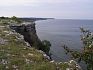 Pěšina vede trávou na vrcholu vysokých bílých útesů. Modrá hladina Baltu splývá na obzoru s oblohou. Výhled je daleký a ostrý, protože slunce svítí směrem na moře. Z Visby právě odplouvá trajekt, mám jej před sebou jako na dlani. Jdu po útesech pár kilometrů. Na několika místech pěšina obchází hluboké strže klesající až na oblázkový břeh. Voda potoka, který sem přitéká, vytváří asi čtyřmetrový vodopád a stéká po skále dolů, aby se ztratila ve slané mořské vodě.