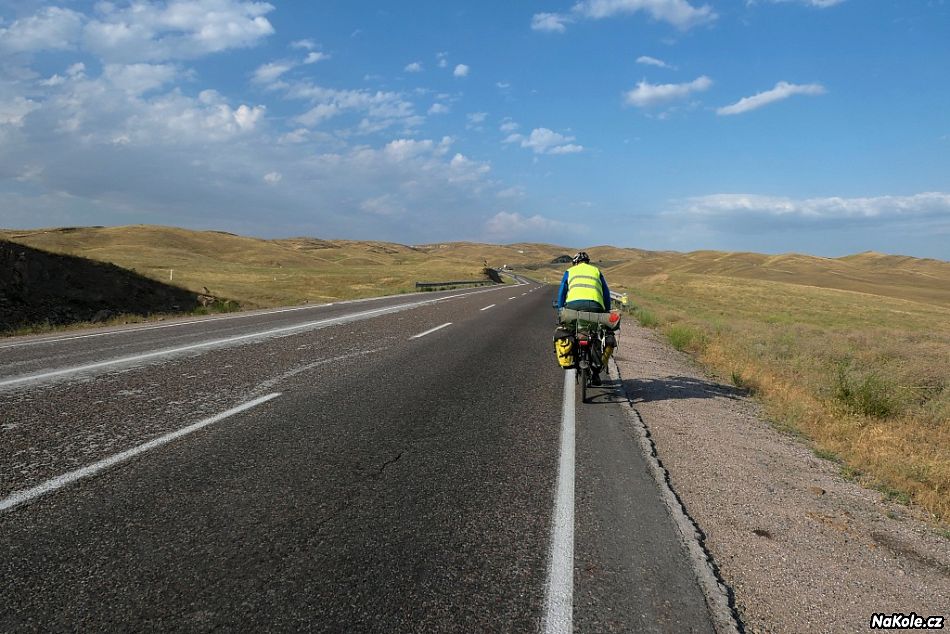 Znamenalo to také přiblížit se horám, vystoupat z 800 do 1100, což sice nestálo za řeč, ale nějaké kopečky to byly. Užívali jsme si civilizaci, kdy jsme na dvaceti kilometrech projeli dvě města. Zastavili jsme, že ochutnáme kumys, kvašené kobylí mléko. Když jsem četla různé cestopisy z těchto končin, předpokládala jsem, že tohle nedám. Kupodivu to nebylo tak zlé a celkem se to dalo. Představte si mírně alkoholický jogurt, v Kazachstánu i sousedním Kyrgyzstánu ho pily i úplně maličké děti.