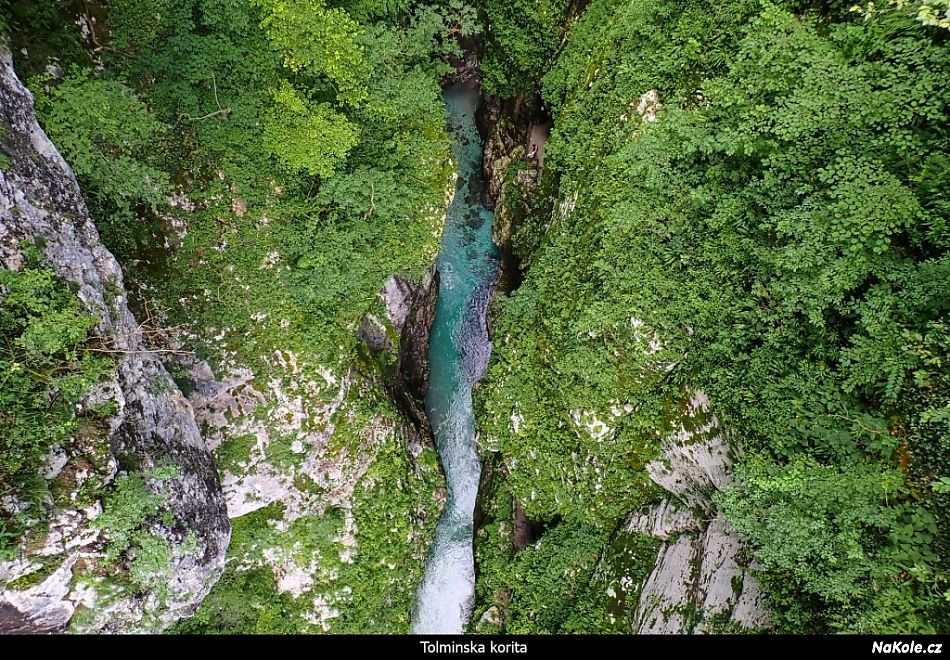 Soutěsku Tolminská korita jsme vzdali, už by to bylo časově hodně velké zdržení (ke každému vodopádu se muselo zajet a jít kousek pěšky), a také se nám nechtělo za vstup platit. Důvod třetí: co s koly? A pak nám paní v pokladně poradila, že když popojedeme na kole ještě asi půl kilometru, tu soutěsku uvidíme shora - a to také nebylo špatné. A zadarmo.