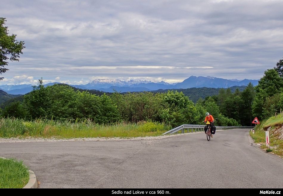 Sjezdem jsme se odměňovali tak dlouho, až jsme sjeli do 200 m n. m. (Most na Soči) a před námi kopec zase do 1200. Prvních 500 metrů pohoda, sklon slušný. Jenže pak mi došlo, že už jsme tuhle cestu přes Čepovan a Lokve jeli, v roce 2012 s dětmi ve vozíku a že to byl masakr. Na 4 km 400 výškových, po makadamu. Jen debil by tohle jel znova, nadávala jsem si. Ale když jsme to tehdy dali i s vozíkem, dáme to dneska taky. Děti tenkrát byly na tento úsek vysazeny z vozíku a šly pěšky. Ale novinka! Bez asfaltu to byly jen 3 kilometry, pak už měla silnice nový asfaltový povrch, odhadem ne víc jak rok starý. Julské Alpy byly za námi a i dnes, stejně jako před lety, jsem obdivovala výhled na ně.