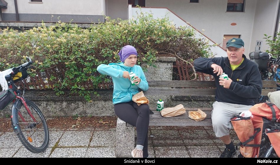 Posnídali jsme v Bovci burek a jogurt, jak to na Balkáně máme rádi. Oslovil nás u toho pán, prý nedávno oslavil 90 let. Každé ráno se prochází takhle po městečku a za pár týdnů se dokonce chystá se svým synem do země, odkud pocházejí jeho rodiče - do Česka. Nasávali jsme honem ten horský vzduch Julských Alp, ať jsme také tak vitální jako on.