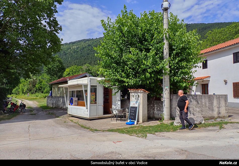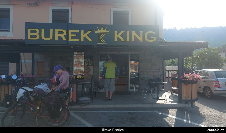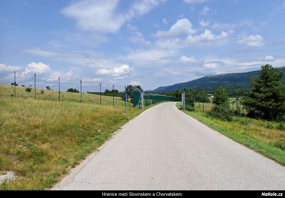 Celý další den se opravdu nesl ve znamení silniček s minimem provozu, bez měst, hospod a obchodů. Jen ty výškový metry! Ale s každým dalším jsme doufali v ochlazení. „Jak se to říká, co sto metrů, to stupeň dolů?" uklidňovali jsme se navzájem. Tím, že bydlíme v 560 nadmořských metrech, považujeme výšku kolem 500 m n. m. za „základ". Vesničky, kterými jsme projížděli, byly opuštěné, jen s pár domky a pěknými kostelíky. Slovinské hranice jsme se zpočátku jen dotkli, zaujal nás plot s ostnatým drátem po celé délce a nádherné travnaté hory všude okolo. V obci Vodice jsme se vydali po makadamové cestě do sedla Velika vrata (760 m), kde se onen plot nacházel také. Brána naštěstí byla otevřená a tak jsme se po 86 chorvatských kilometrech vrátili zase do Slovinska. Přespali jsme ve starém jabloňovém sadu a ve městě Ilirská Bistrice jakoby ucítili závan pravého Balkánu, který máme rádi... Dali jsme si ke svačině burek a kafe a pokračovali dál na sever.
