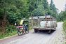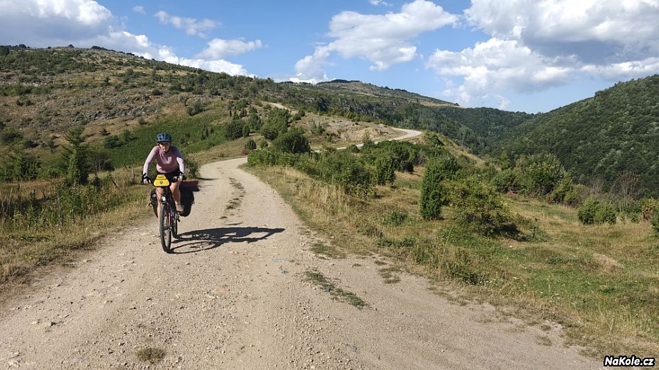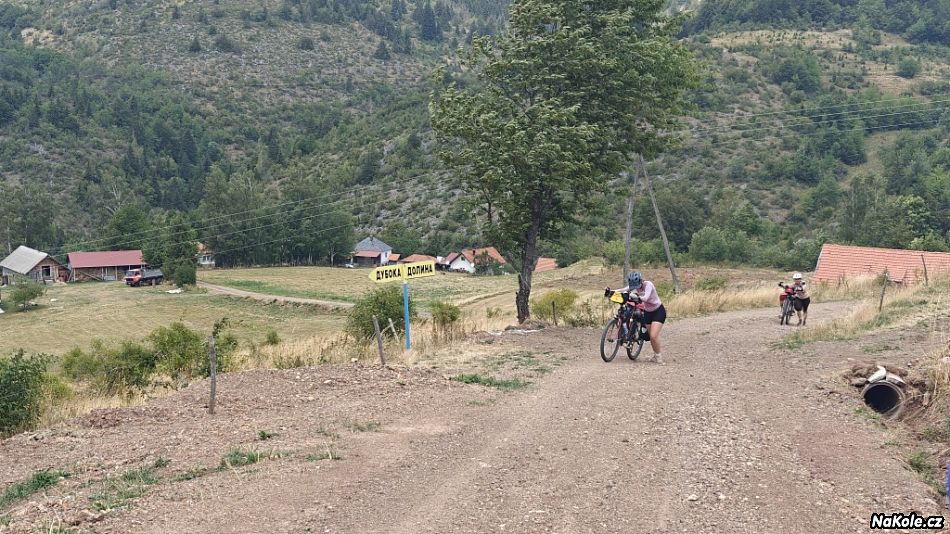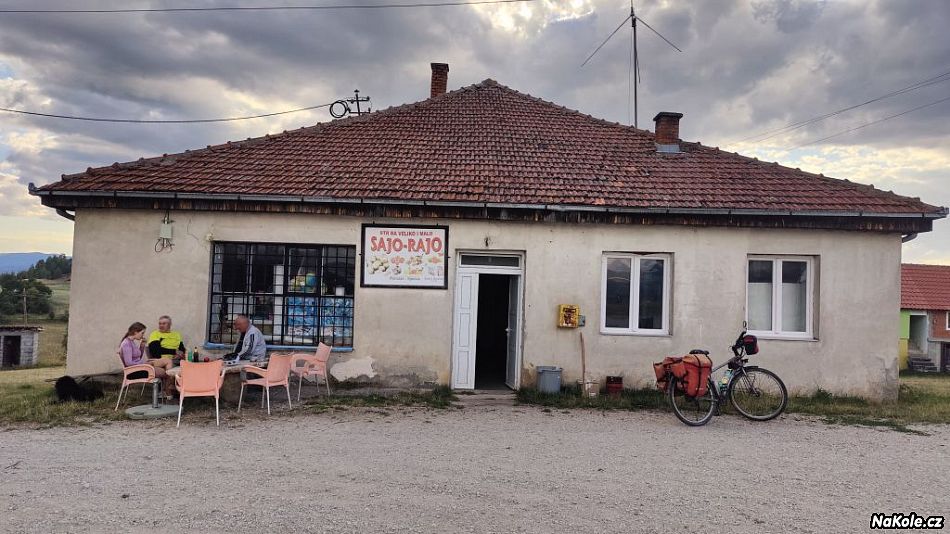 Hned od rána to stoupalo do zmíněných 1300 velice pěknou kopcovitou krajinou, ale takovou, kdy při pohledu do dáli netušíte, kudy tu silnici potáhnou dál. Pak skončil asfalt, i když to byla podle mapy tlustá bílá silnice, a klasika - místy se dalo jet, místy se muselo tlačit. Tedy jak kdo, Luděk to vyjel celé. Jedinou možnost, kde se najíst, nám poskytla jakási záhadná obec Štitkovo. Záhadná v tom, že se nachází uprostřed ničeho, a kromě pár polorozpadlých domků a malého pravoslavného kostelíka, v ní ani v okolí nebylo nic zajímavého. A tady provozovali ubytování a bufet, nazvali to etno (jakože tradiční) a lidi sem jezdí. Proč ne. Trochu nás natáhli, jakože menu žádné a ceny si pak vycucali z prstu, ale byla to jediná možnost ať už ochod nebo hospody za celý den a mohli jsme si tam dát telefony do nabíječky.