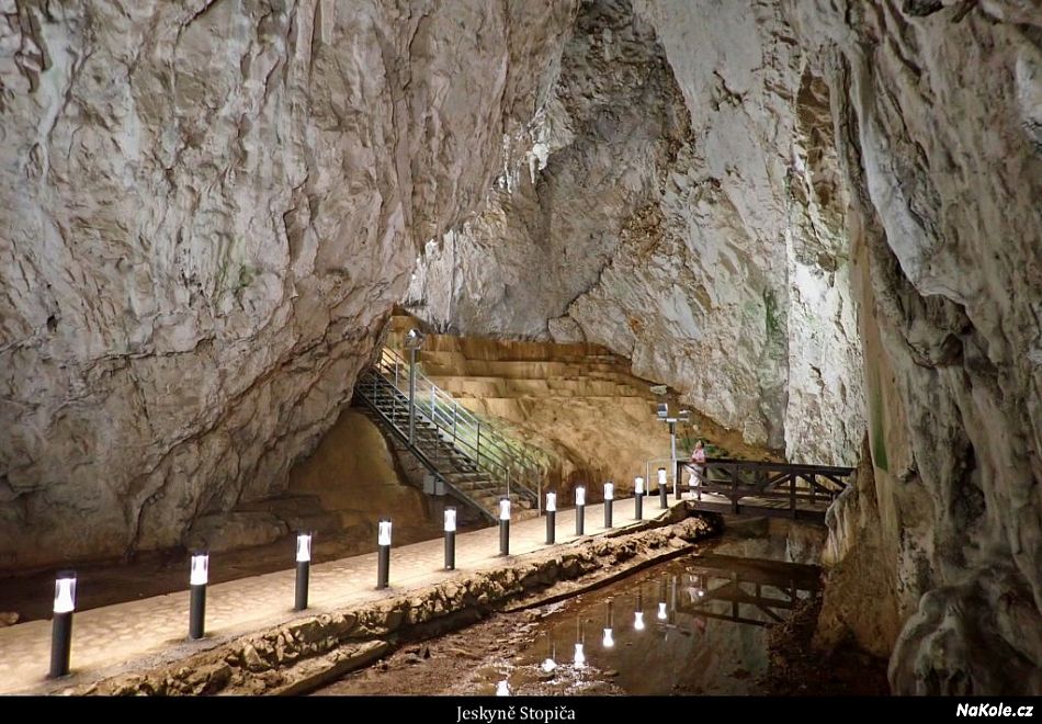 Jeskyně Stopiča - zaplatili jsme vstupné a na prohlídku jdeme po dlážděných chodnících sami, tak je to nejlepší. Moc pěkná krápníková jeskyně, ale ochladit jsme se v ní nestihli. Krajina je hodně zvlněná, ale držíme si výšku 800-1000 metrů, neklesáme níž. V jednu chvíli zahřmělo, nedělá mi to dobře v těch vyšších nadmořských výškách. Naštěstí z toho nic nebylo, nebo jsme tomu ujeli.
