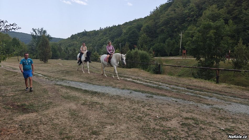 Kousek od vodopádu jiný chlapík provozoval jízdy na koních. Šárka se tvářila, že na koni ještě nikdy neseděla, tak tatínek rozhodl (šok!!!) že jí projížďku koupí. Nakonec přemluvili i mě :-) Nebylo to dlouhé, koníci s námi obešli dvorek asi 2x, ale byla to docela legrace. Pár fotek na památku a zpátky do cyklistických sedel.