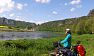 Ve čtvrtek odpoledne, hned jak jsme přišli z práce jsme popadli kola a vlakem ČD jsme dojeli do Bad Schandau. A odtud pěkně po nové levobřežní cyklostezce, která však ještě není úplně dokončená, nejdřív do Königsteinu. Nedokončený úsek je jen úzká blátivá cestička mezi náspem a pobřežním srázem. Netuším, jak to chtějí řešit, nejspíš tam udělají zábradlí a občas nějaká místa na vyhnutí. V Königsteinu si prohlídneme město a kostel a celou prohlídku završíme kávou a koláčem. Času máme spoustu. Tak volným tempem dojedeme do kempu Wostra, kde jsme jako stanaři jediní.