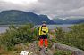 Dál jsme už pokračovali v membránových bundách a lyžařských rukavicích. Následovalo několik horských sedel, kdy i při sjezdech dolů jsme museli intenzivně šlapat. Prostě Norové nerespektují, zda cesta vede do kopce nebo z kopce. Přitom je to tak jednoduché, dokopec se šlape, zkopec se sjíždí. Zde cyklista musí šlapat jak nahoru, tak dolů.