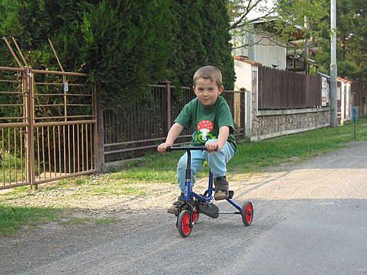 1. Začněte tak ve dvou letech. Vypadá to strašně brzo, ale není, protože začnete tříkolkou. Postavte ji v bytě a nechte být. Důležité je, aby to byla úplně klasická tříkolka. Musí mít řetěz, poháněné zadní kolo a normální řídítka. Žádný plastový výkřik z Globusu s pohonem předního kola. Ta naše se jmenuje Pája a je od firmy Hota. Matěj ji dostal od babičky s dědou ke druhým narozkám. Jezdil na ní po bytě tam a zpět, vozil na ní plyšáky, tahal za ní houpacího koně atd. Sám od sebe, protože ho to bavilo. Tím se naučil první půlku tajemství jízdy na kole – šlapání.