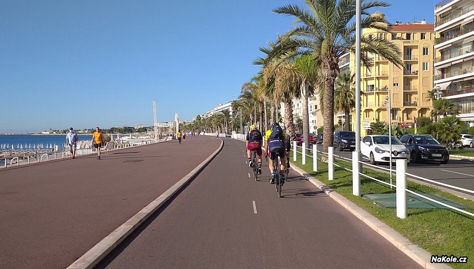 Město vás už omrzelo? Pojďme na pláže. Pobřežní Anglická promenáda v Nice se nabízí jako vhodný startovní bod pro cyklistické výpady do okolí. Pokud volíte pohodovou jízdu na kole podél pláže s možností koupání, vystačíte si se sdílenými koly nebo elektrokoly VéloBleu, které již byly zmíněny v úvodu článku. Pro sportovní jízdu bude nepochybně lepší zvolit některou z cyklopůjčoven, kde jsou k dispozici i pěkné silniční karbonové kousky s elektronickým řazením. Jízda na takovém kole se snoubí s lehkostí a začíná být postupně návyková. Skvěle si tak vychutnáte svižnou jízdu podél pobřeží.
