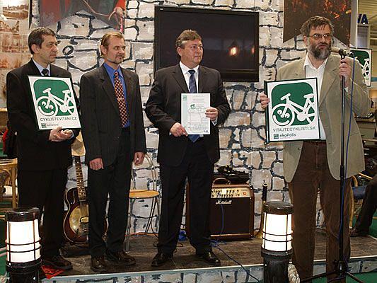 Značku se zelenobílým usmívajícím se kolem můžete najít také na Slovensku. Prvním držitelem certifikátu „Vitajte cyklisti“ se stalo