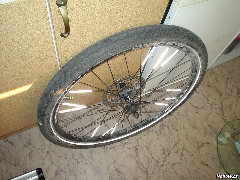 Nejhorší mi přijdou ty gumy. Zimní MTB guma s ocelovýma hrotama váží samotná stejně, jako kompletní zadní kolo mého lowraceru s kazetou a karimatkovým wheeldiskem. I terénní guma bez hrotů může klidně přihodit kilo oproti Marathonu a kilo a půl oproti Duranu. A jakoby to nestačilo, tak 1g 26-ti palcového pláště spotřebuje při akceleraci pětkrát víc energie než 1g rámu (četl jsem, byl jsem líný to přepočítat). Takže přezutí Apusu z Marathonů na velké zubaté gumy ho zpomalí fakt drasticky, ještě mnohem víc než by napovídala samotná vyšší váha.
