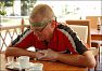 Tak dneska dopoledne přijel nakolík do Jihočeska. Přivezl ho Airline ke mně do Týna nad Vltavou. Cestou na jih natočil něco přes stovku kilometrů a do Tábora jel samozřejmě po hlavní. Přijel se podívat i Honza (sete) z Budějovic, byl na na ten nakolík zvědavej. Dali jsme na náměstí v cukrárně pod slunečníkem kafíčko, zrovna končila nedělní mše a lidi se rozcházeli z kostela, je první červenec a začínaj prázdniny... Jedna hodná paní od vedlejšího stolu nás vyfotila.