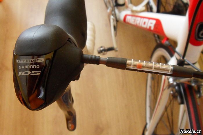 Potřebu nějak usnadnit ženě přehled o zařazeném převodu na silničce (začíná) na 10 rychlostní sadě Sh105. Na kole má ten starší typ řadicích pák, kdy bovden ještě není schován pod omotávkou, ale je vyveden na vnitřní stranu páky. Předpokládám, že to tam půjde. Podle obrázku se ten indikátor asi montuje na bovden těsně k páce.
