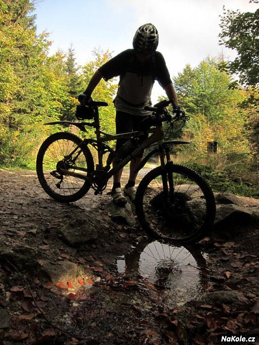 Dneska jsme si s rondou vyrazili konečně vyzkoušet MTB Sudety, pro začátek alespoň jižní část. Vyjížděli jsme ze Žďárek přes Hvězdu, Honské sedlo, Honský Špičák, Ameriku, Suchý důl, Nad Slavným. Potud výborné, lehce větší mokro než by bylo akorát, zbytečně moc napadaného listí na kameny, klacky a kořeny, ale přesto pěkné. Pak přišel sjezd pod Velkou kupou a ten se rondovi krapet nepovedl a tak jsme zbytek cesty už nejeli úplně po trase Sudety a museli závěr maličko vykrátit.