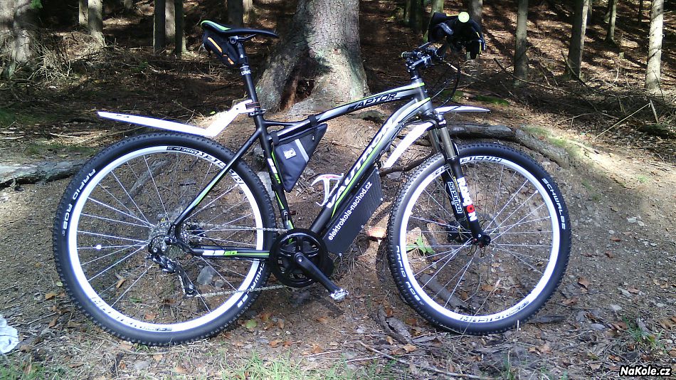 Tak jsem se rozhod pochlubit svým výtvorem, už mě tak nějak nebavilo řešit "rachocení" a "ulamování" se různých plastových částí držáků akumulátorů elektrokol a tak jsem se rozhodl jít vlastní cestou konstrukce.Vzhledem k tomu, že kolo využívám převážně v terénu, jsem chtěl zachovat i nízké těžiště, takže aku je umístěn do vlastního alu boxu natvrdo přidělaného do rámu a co se týká pohonu, tak klasický 8FUN střeďák 250.Vzhledem k tomu, že jezdím cca do 50km, aku jsem zvolil 36V/10Ah Li-Fe z produkce A123. No tak posuďte sami :) Za mě musím říct, že jízní vlastnosti jsou naprosto parádní a ani technický úsek nedělá kolu žádný problém :) Jediné co bych uvítal je menší převodník a samosebou snímač kroutícího