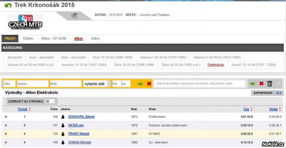 Trek Krkonošák 2015 - závodily i elektrokola.