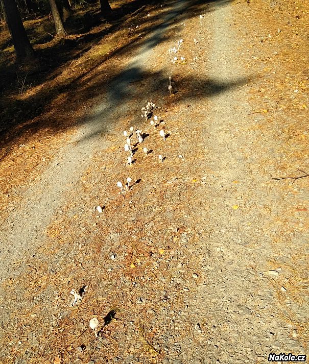 A když jsem jel domů tak na jedné štěrkové lesní cestě - houby a kvanta hub. Lesy jsou vysušené, že široko daleko ani muchomůrka a tady v prostředku štěrkové cesty toliká hub.