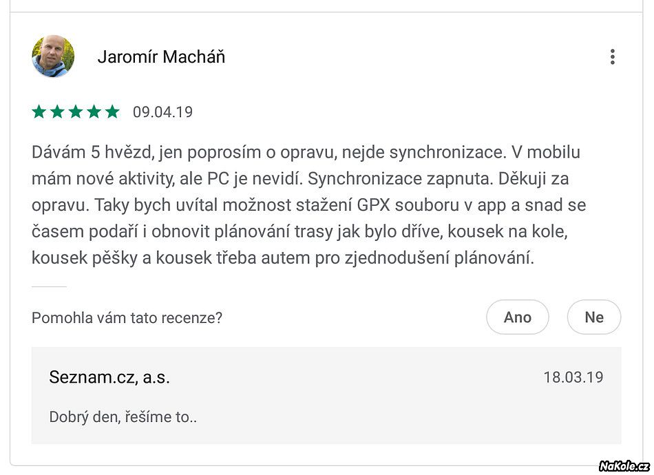 Vzal jsem si dnes na projížďku do kapsy mobil se zapnutým stopařem v mapy.cz.Celá trasa se v pohodě nahrála do mobilu ale neni v PC.Čekal jsem že tam ty data v rámci stejného účtu automaticky budou.Místa a trasy z minula (pěšo po lese) v pc mám.V aktivitách jsou ale jen nuly.Pokud je tu někdo kdo to používá tak poraďte.Dík.