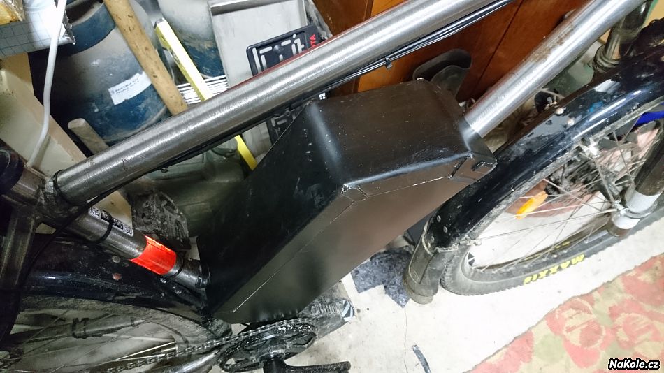 Abych mohl jezdit do prace i ve vetsich mrazech postavil jsem pevne, presne dolehajici pouzdro z trubek (kulate i obdelnikove) a desek od vzduchotechniky - maji presne 11cm na sirku a to je presne limit aby do toho nenarazely pedaly (0.5cm na kazde strane misto ). Uvnitr pouzdra jsou vsechny vnitrni steny kryty 1cm tlustou deskou z aerogelu ktery je perfektnim izolantem - lepsim nez EPS polystyren (nicmene velmi tezko se s nim pracuje protoze pri manipulaci a rezani uvolnuje velmi jemny prach ktery muze osklive drazdit dychaci cesty, ruce, oci) Aerogelova desky ktere jsem si narezal jsou zality butylovym lepidlem v igelitu a nasledne nejake izolacni pasce - takze se s tim da v pohode manipulovat a takto je to umisteno v tom pouzdre. Rohy, mezery a jina problematicka mista doresilo nejake 1cm neoprenove samolepici tesneni co se pouziva mj. na odhlucneni aut.