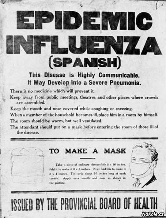 Kdyby to rouškování bylo tak spasitelný, tak nechápu, kde dělali chybu počátkem minulého století. Přece když měli tolik mrtvejch, tak mohli mít i tu trochu disciplíny. Ne, že by jim to tenkrát neradili...