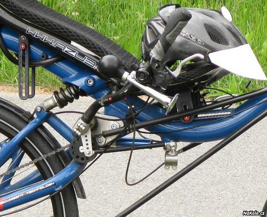 kde máte umístěný zvonek na lehokole? Konkrétně mě zajímá AZUBovské spodní řízení. Jako jedna možnost je jít cestou nějaké elektroniky, jako je Radkova siréna, ale možná by zatím stačil obyčejný maličký mechanický zvonek. Tady ti chodci na cyklostezkách jsou občas opravdu za trest. Teda já jsem docela nekonfliktní, takže nemám problém zakřičet nějaké "s dovolením ... děkuju", ale problém je, že ani to lidi občas neslyší. Takže zvonek.