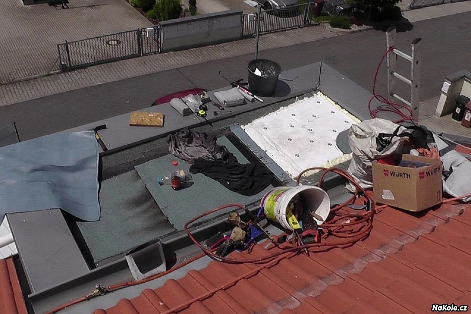 Izolatér pracuje na ploché střeše, po ní si chodí jako pán.