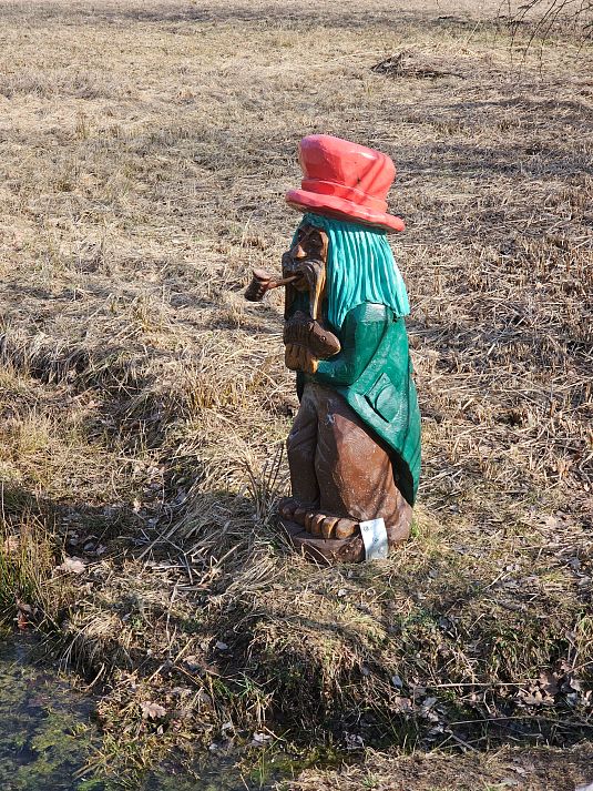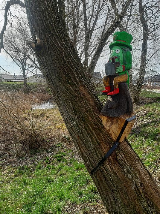 Dneska ve Velkých Svatoňovicích u rybníka u Batňovic mě zaujal jeden celkem dobře vyřezaný vodník se sympatickou žabkou