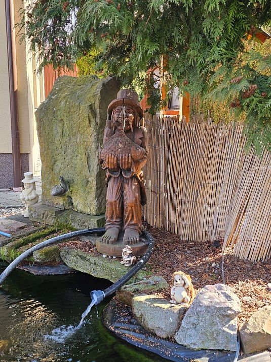 další vodník hlídá zahradní jezírko v Kunvaldu