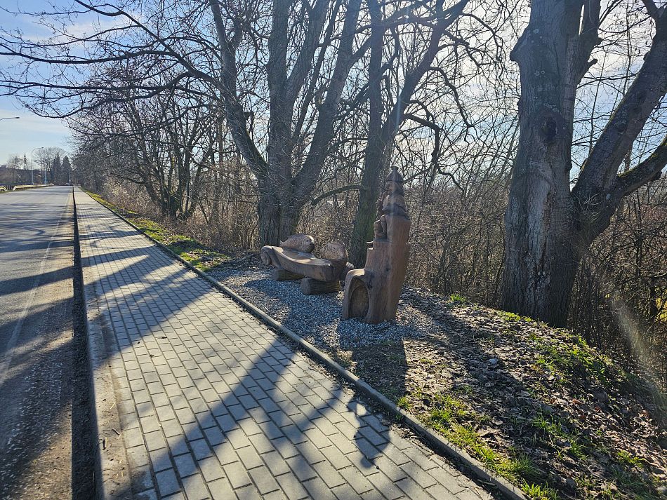 jeden zbrusu nový vodník připravený k prodeji před řezbářskou dílnou v Poličce