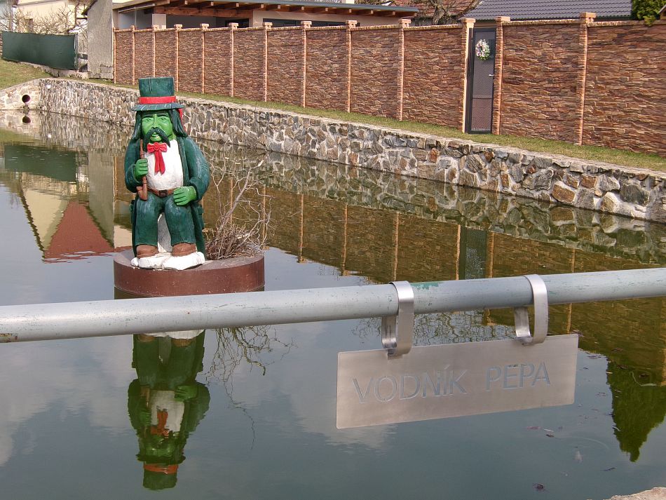 U nás se u Starých pakáren vyskytuje hospoda Terasa U vodníka s vodníkem nad rybníčkem. Každej rok na jaře ho znovu nazeleněj, tak je krásně rozeznat z tramvaje. Ač už třináct let bydlím o dvě zastávky dál, nikdy jsem tam nebyl, protože je to věčně skoro prázdný. A přitom docela pěkná lokalita. Asi tam mají mizerný pivo.