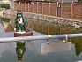 jeden vodník s čápem a husou u zahradního jezítka v Moravanském