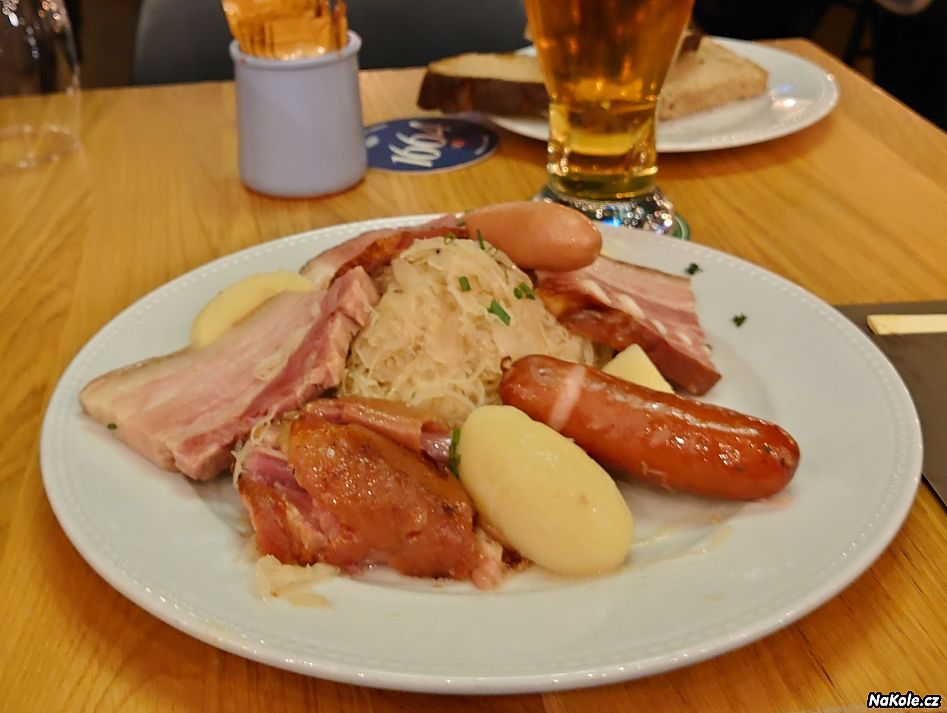Prostě ohřátá velmi kvalitní uzenina se zelím, a když si připlatíš, i kus prasete bude, ne-li celá přední nožka.
