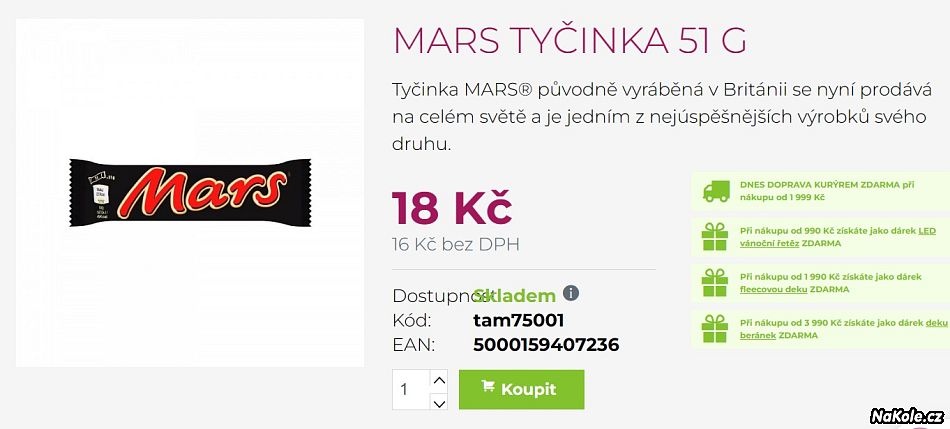 Tyčka Mars má dokonce 51g :-D