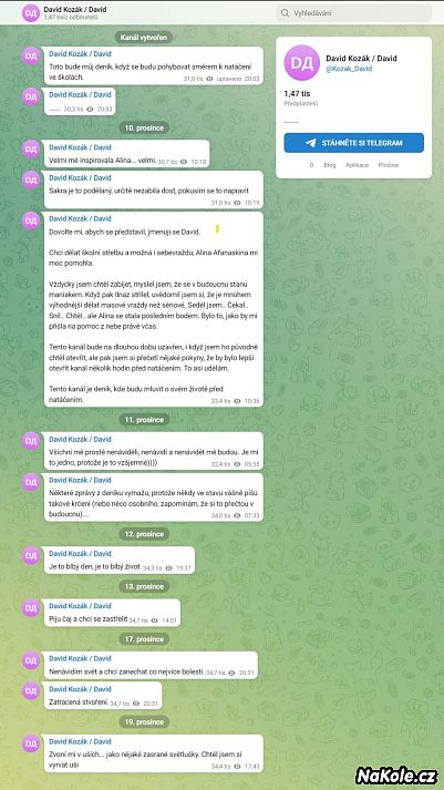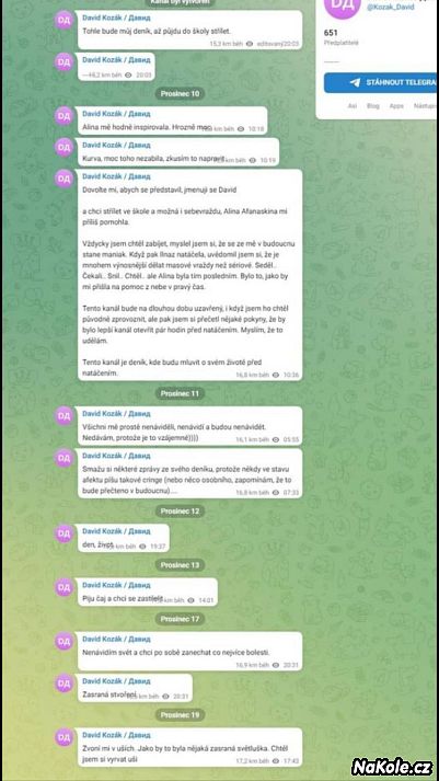Ale nemáš pocit, že na rozdíl ode mne, která jen hloupě kecá, ten střelec konal? Ten střelec (zdráhám se ho nazvat člověkem), co nekecal, měl všechny informace, měl zbroják a spousty legálně držených zbraní. Tak ten nebyl blbej jako já a nekecal nesmysly.