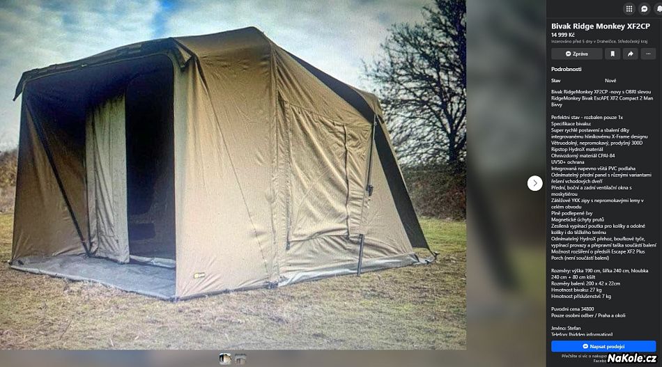 Pokud někdo plánujete vyrazit nalehko, na Marketplace je k mání suprový Bivak Ridge Monkey XF2CP, s velkou slevou, jen za 14 999kč (původní cena 34800kč)