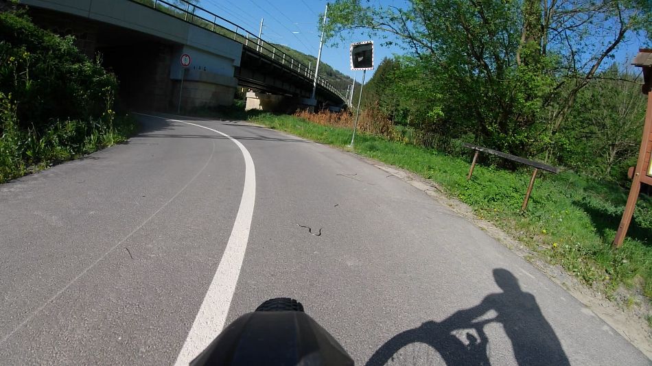 Po cestě mě zaujal dost mladý chlapík na silniční tříkolce, zřejmě neudržel stabilitu. Tříkolku ze silničky jsem ještě neviděl, ale do kopce to s tím drtil statečně a docela slušným tempem, rozhodně se neflákal.