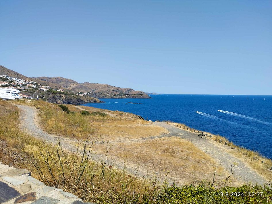 Tmavý pruh nad hřebeny kopců, tak to je prosím mořská hladina, focená z výšky 570 metrů nad mořem. Na fotce v předchozím příspěvku je vidět taky, v levé části snímku. Celkem působivé výhledy je jeden z důvodů, proč se tam každý rok sápu, i když je to většinou na chcípnutí. Další důvod je to zvláštní ticho, jen cikády a šplouchání vody v bidonu, von jak ho mám vodorovně, tak šplouchá v rytmu šlapání :-)