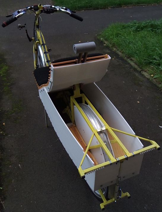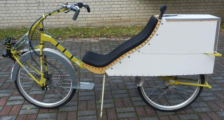 Testovací jízda vyšla na větrné nedělní odpoledne. V polích u Počerad vede taková pěkná severojižní topolová alej, kde se ukázalo, že boční poryvy jsou hodně znát. Ne že by mi vyloženě hrozil pád, ale kličkoval jsem víc než je zdrávo. Cestování v plném provozu budu muset odložit, dokud se to nenaučím bezpečně vyrovnávat. Lowracer byl v tomhle ohledu lepší, proti bočnímu větru byl téměř imunní. Tailbox je sice optimalizovaný pro náklad, ale aerodynamiku vylepšil taky: průměrná rychlost stoupla z 25 na 26 km/h a mám pocit, že mě poryvy severozápadního větru při jízdě na sever postrkovaly dopředu.