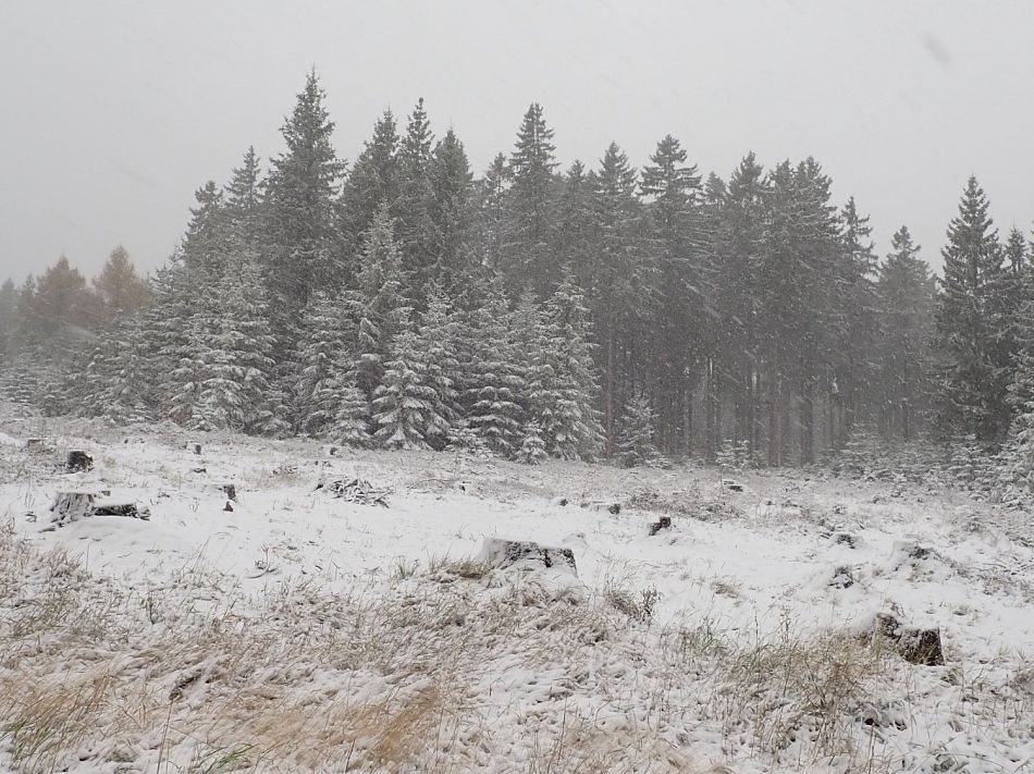 Kolem 12:30 - přesně podle radaru - se počasí otočilo. Spustil se déšť se sněhem.